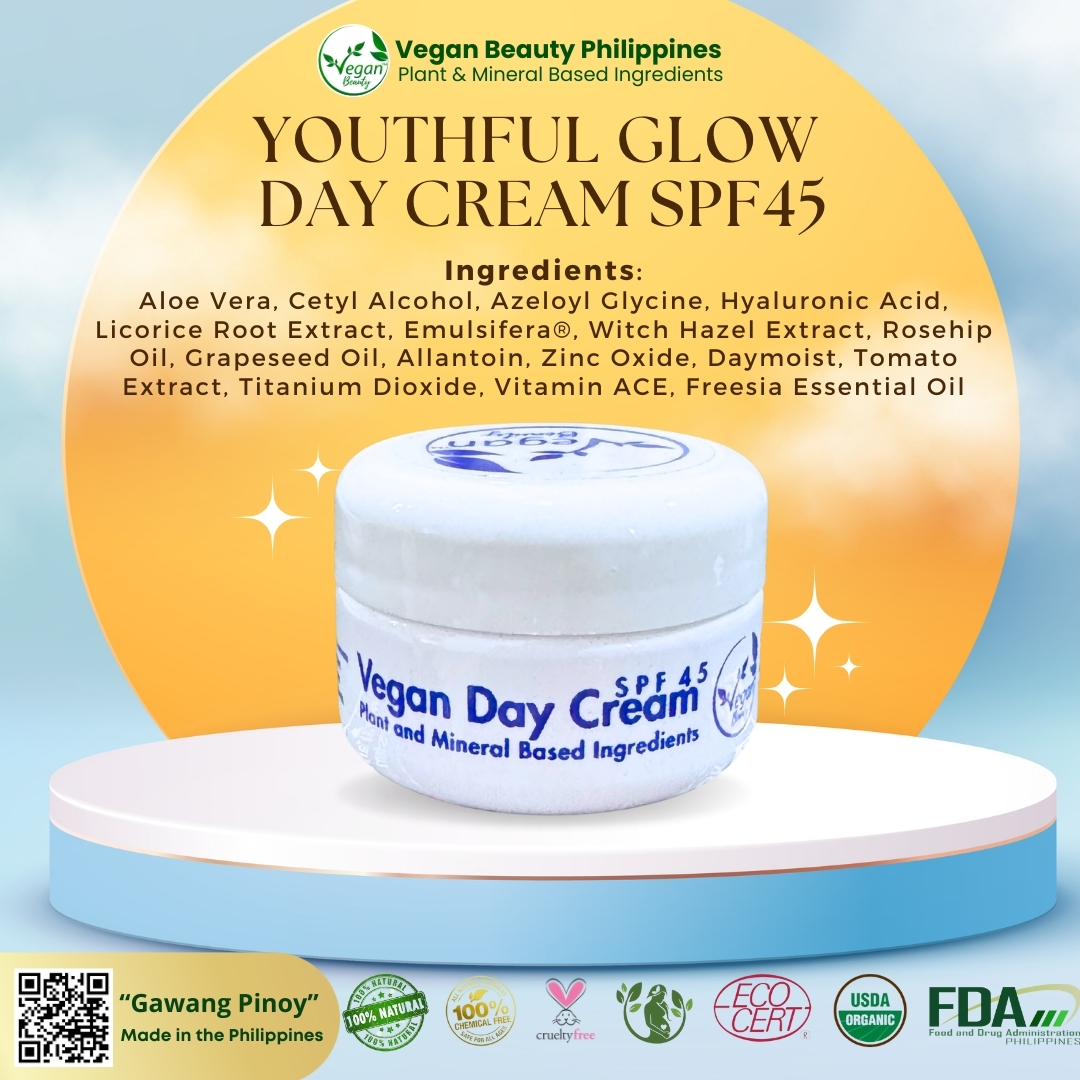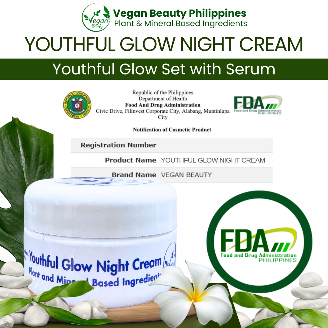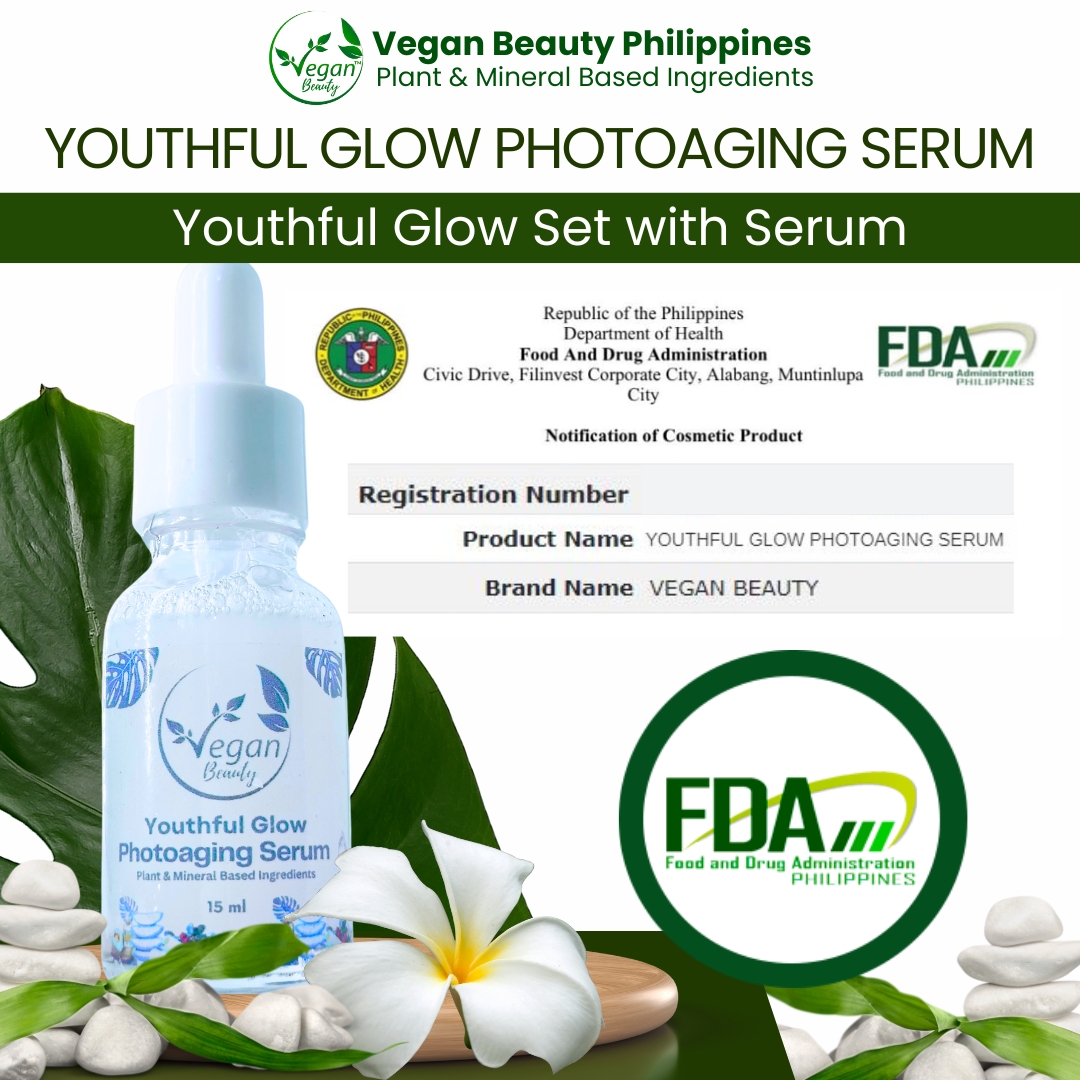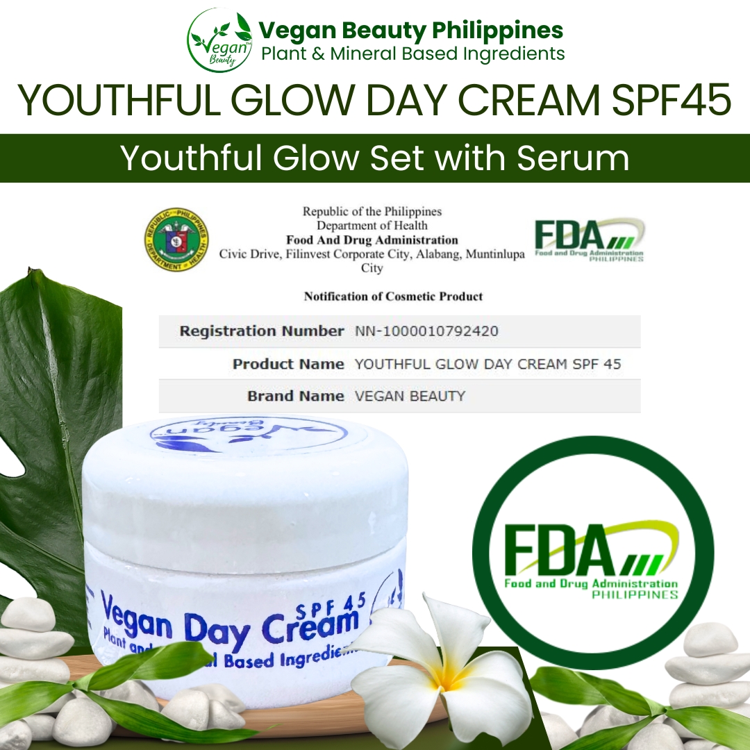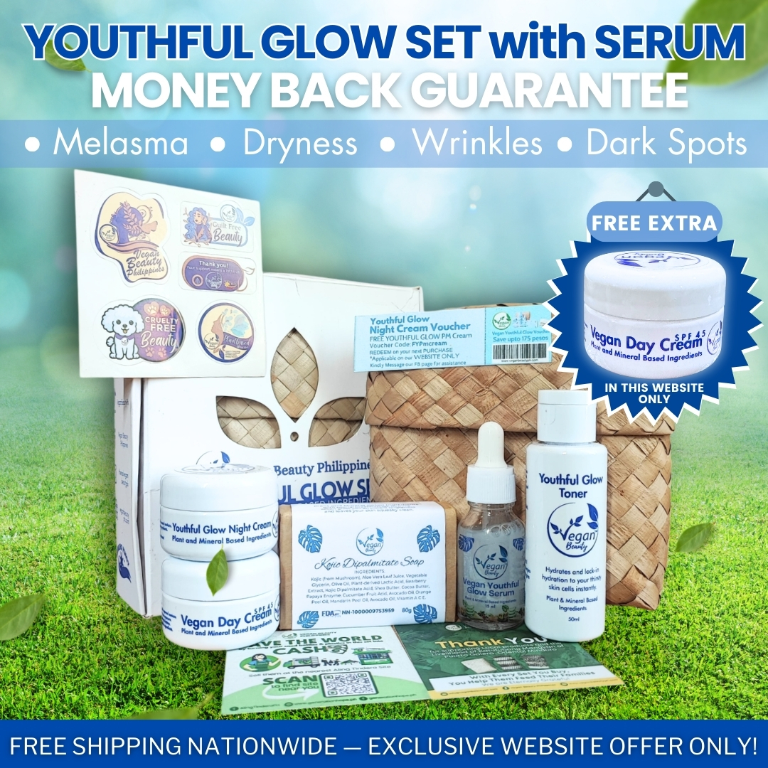 Vegan Youthful Glow Set with Serum Skincare Set is 1,299 pesos. Get P175 voucher that you can use on your next order + Free Extra Vegan Day Cream SPF45..